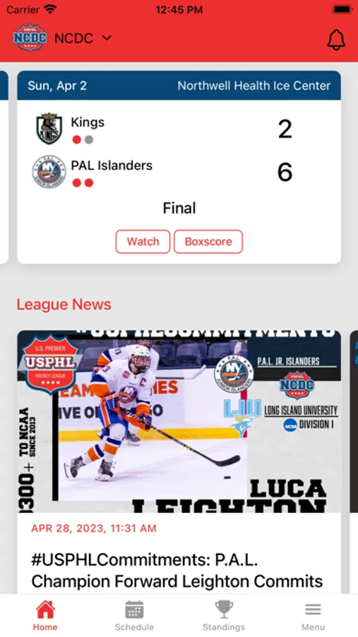 Welcome to the official app of the National Collegiate Development Conference of the USPHL. This is your mobile source for all the latest news, social posts, scores, player stats, player details, schedules, standings, videos and official content from the NCDC. Download for free today and take the NCDC with you everywhere you go.