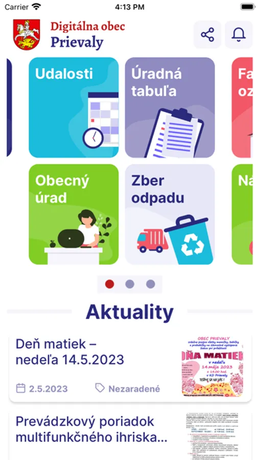 Na jednom mieste aktuality, udalosti, informácie z obecného úradu, počasie, kalendár zberu odpadu, farské oznamy, história, fotogaléria, podnety, užitočné návody, zasielanie dôležitých notifikácií a všetky ostatné informácie pre občana.