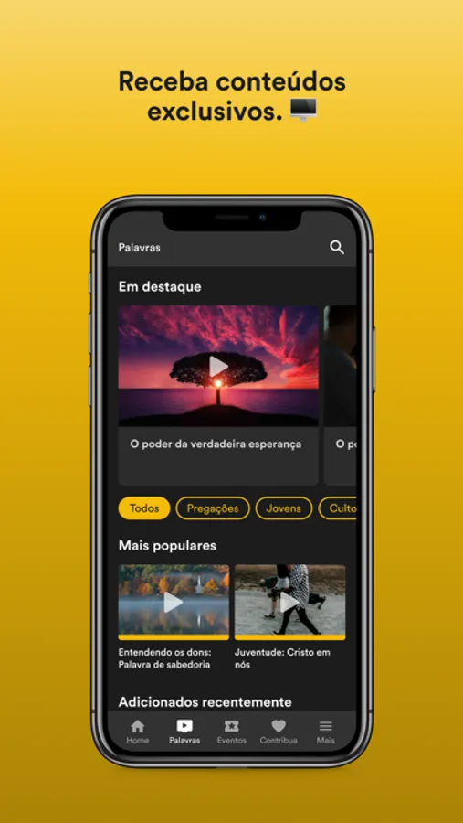 - Siga a agenda e fique por dentro de tudo que acontece na igreja, inscreva-se em eventos e tenha seus ingressos sempre com você.