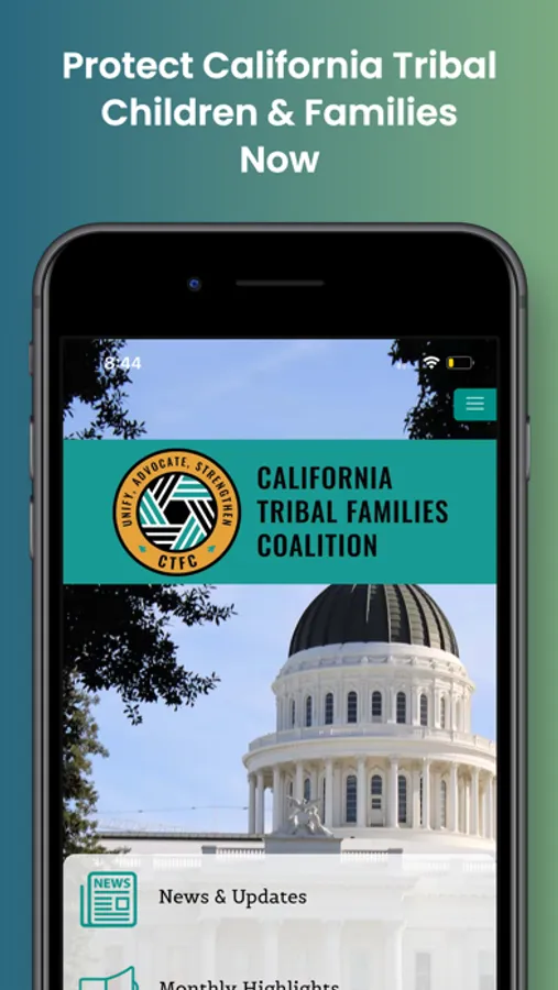 The California Tribal Families Coalition (CTFC) app will share information among all California Tribes. CTFC has worked with its member tribes to successfully pass key legislation that helps protect Native children and tribal sovereignty. The goal of the CTFC app is to advance its mission to promote and protect the health, safety and welfare of tribal children and families, which are inherent tribal governmental functions and at the core of tribal sovereignty and tribal governance.