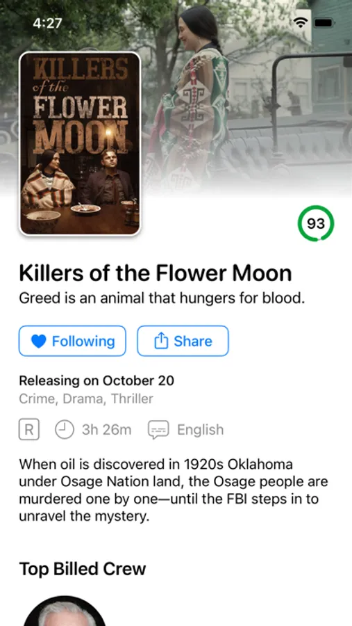 - Follow movies to get updates on release dates, new posters, new trailers, and when cast and crew are attached to a movie.