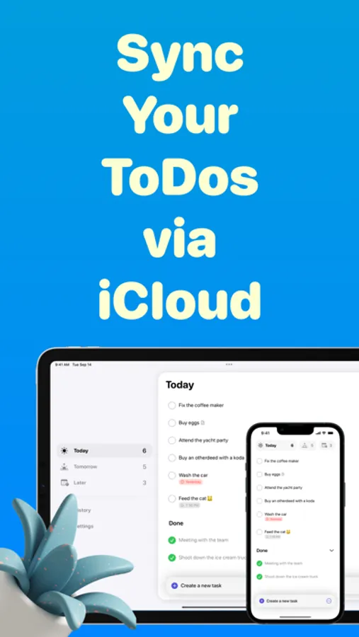 • iCloud sync - Your ToDos automatically backs up to your iCloud account and syncs across your devices.