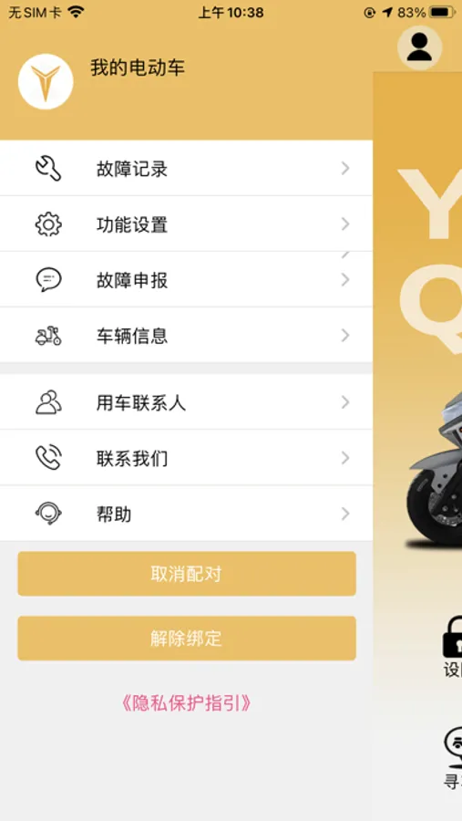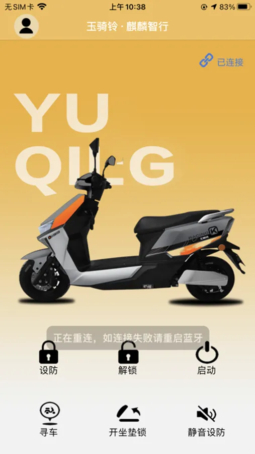 主页模块中,你可以了解到电动车的码数以及电量等信息,并且可以控制报警器。