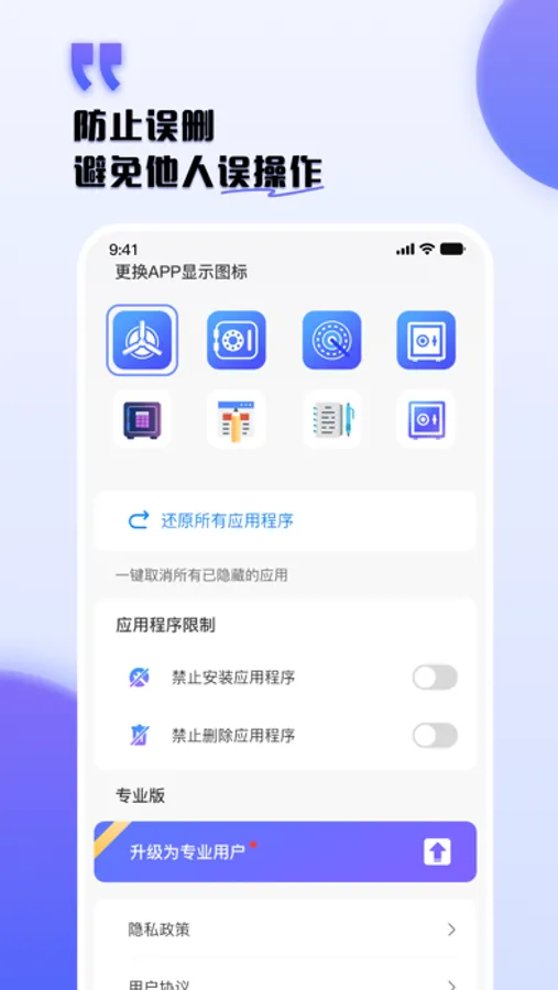 除此之外,它还可以保护您的手机在未经您允许的情况下,无法安装或者删除软件,避免重要信息被误删导致的损失。