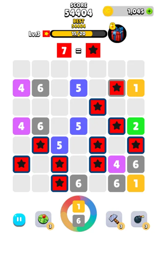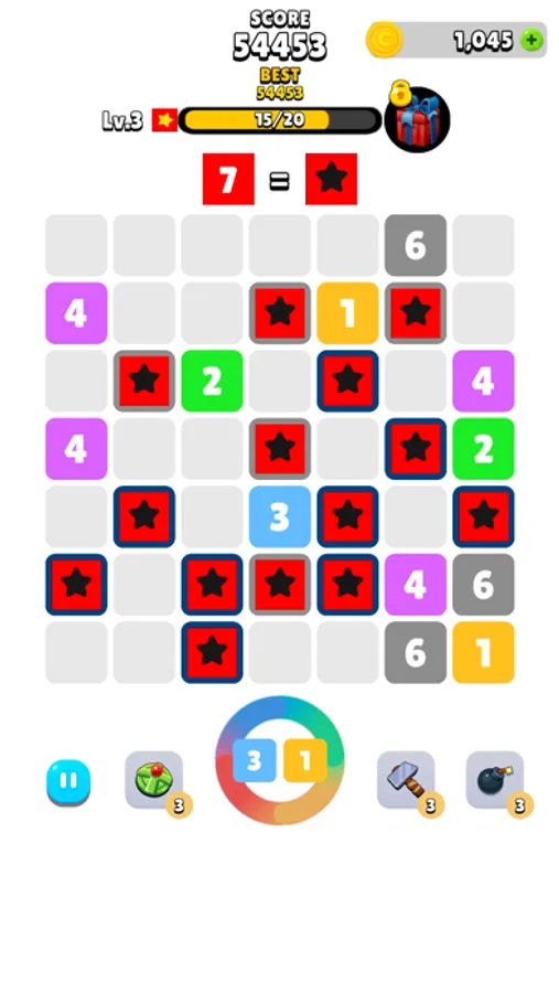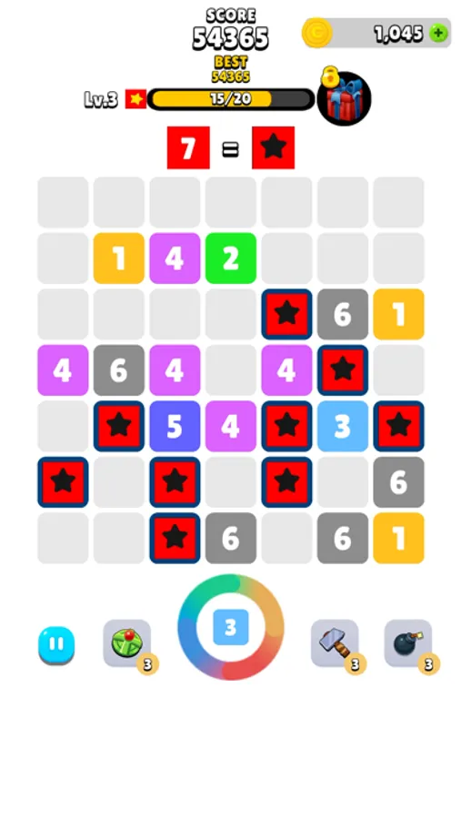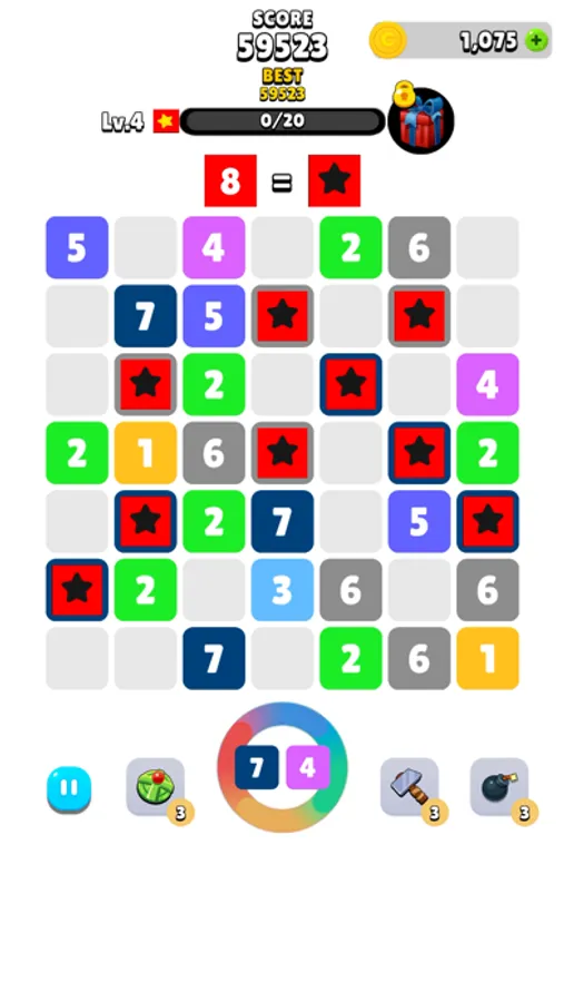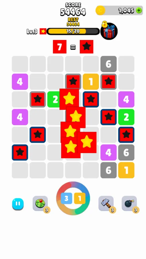 - When blocks with the same number are matched, the number increases and becomes a star.