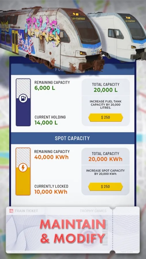 - Customize and upgrade your trains