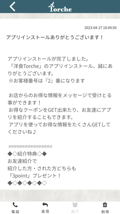 洋食トルシュのアプリをSNSを通じてお友達に紹介する事ができます。