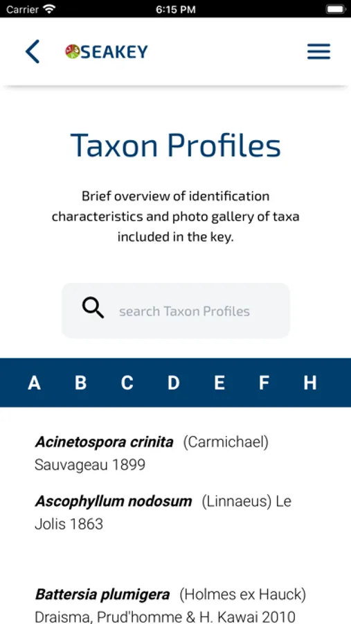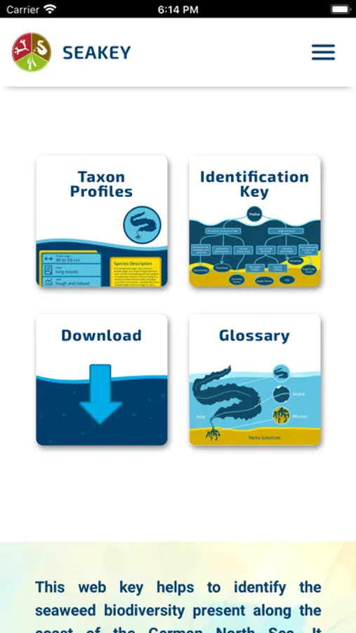 This toolbox assists you in identifying the seaweeds of the German North Sea. Use the interactive Identification Key for species identification. Verify your identification with additional information from Taxon Profiles. Refer to the Glossary for explanation of scientific terms.