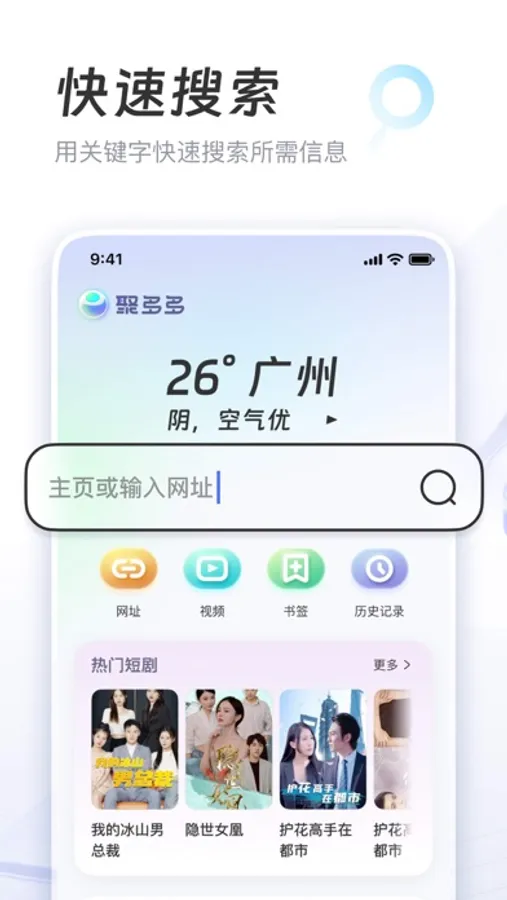 欢迎下载聚多多,体验我们智能、高效、便捷的浏览服务。无论您需要搜索短剧、浏览网页、管理标签页,还是快速访问热门网址,聚多多都能为您提供一站式的解决方案。我们致力于为您打造最优质的浏览体验,让您随时随地享受极致的上网体验。