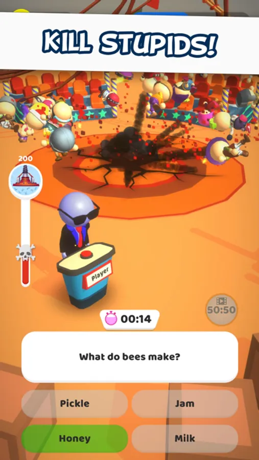 Answer questions correctly to unlock new and more sinister ways to eliminate them.
