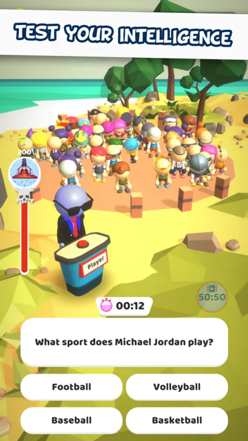 In Kill The Crowd - Quiz of Death you'll put your knowledge to the test against a merciless crowd that you must eliminate one question at a time. The better you do, the more powerful your killing utensils become. As you mastered through questions, you will be the last man standing in the room!