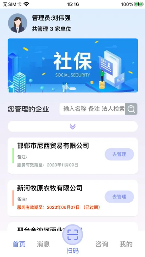 丁香管家为劳资员服务的CRM系统,可以方便地管理自己代理的企业,为这些企业办理相关社保业务。