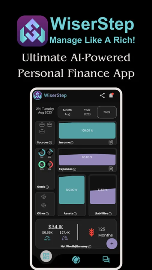 Take control of your financial journey with WiserStep, the ultimate personal finance management tool. WiserStep is packed with powerful features that allow you to effortlessly track and manage your income, expenses, assets, liabilities, budgets, goals, and recurring entries. Stay on top of your finances with helpful notification reminders and achieve your financial milestones with ease.