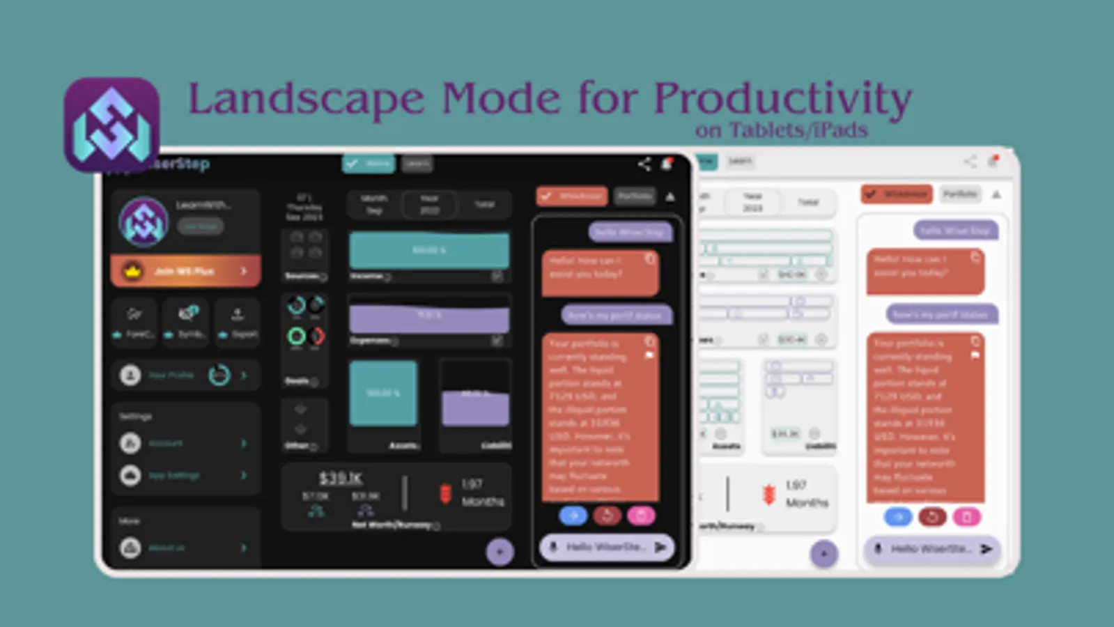 Your all-in-one personal finance companion. Manage your finances with an intuitive portfolio tool, chat with our AI chatbot for valuable insights, and grow your financial literacy within our vibrant Learn community. Empower your financial journey with WiserStep with three main principles: Manage | Chat | Learn.