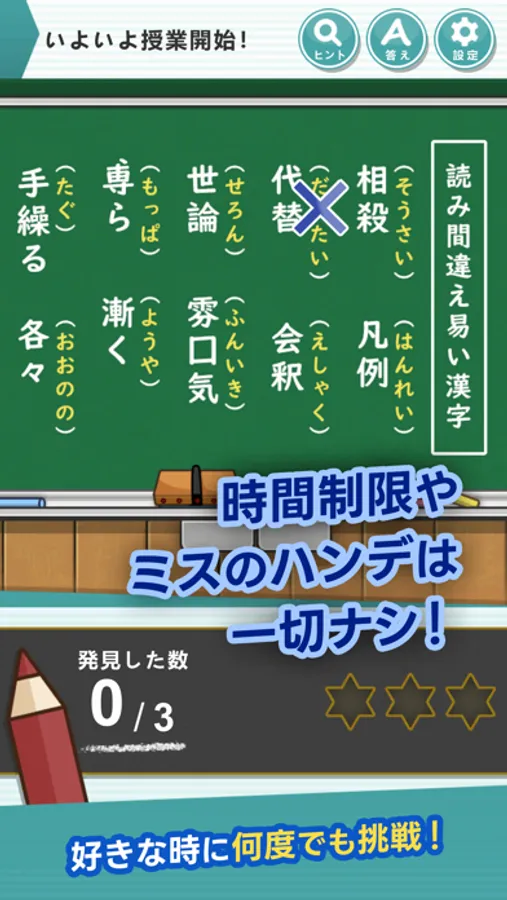 ・お手つきによるハンデやゲームオーバーもなし!何度でも無制限にチャレンジできます。