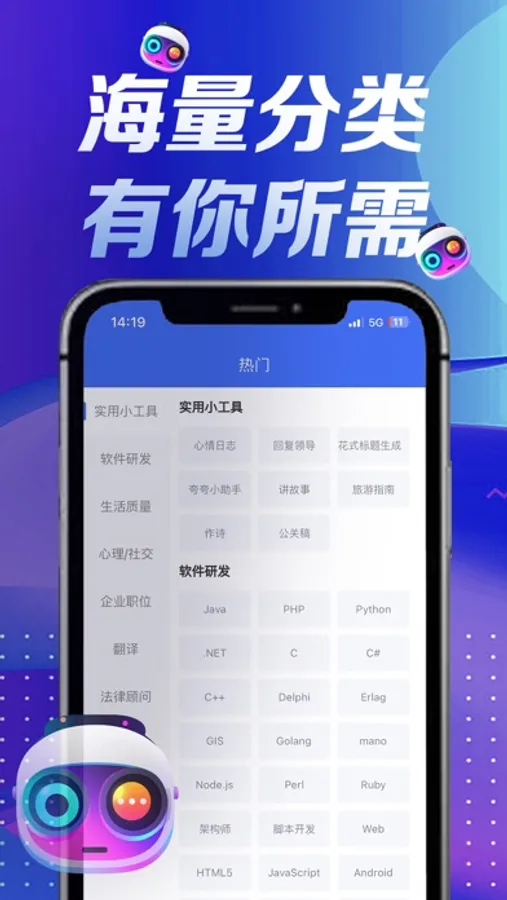 AI聊天写作机器人秘书 APP是一款让你尽情畅聊的问答创作文案小说万能助手应用。具有高度智能的对话能力。无论你需要寻求关于生活、工作、学习等各个领域的建议,还是仅仅想找一个可以闲聊的人,AI聊天写作机器人秘书 APP 都能为你提供更加个性化的服务。
