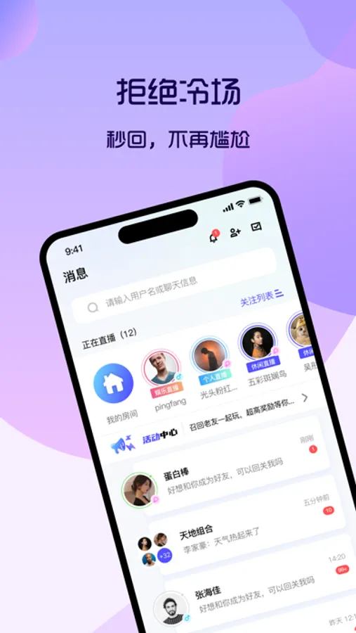 用户可以创建自己的直播房间并与其他用户实时交流。