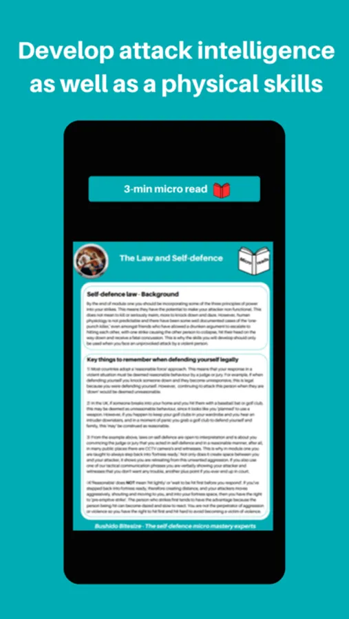 Knowledge Is Power: 3-minute micro-reads to help you understand the psychology of an attacker, the legal ramifications of self-defence, the brain hormones of hysterical strength (the body’s natural power boost), and more.