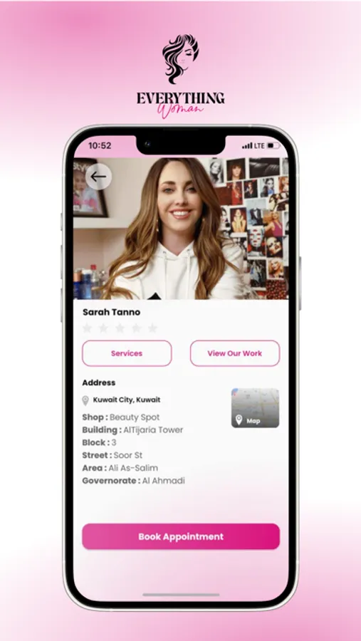 تم إنشاء التطبيق Everything Woman لجمع أفضل فناني المكياج في الكويت معا. سيساعد هذا التطبيق في تسهيل الحجوزات والتوافر لعملائنا بأكثر الطرق ملاءمة ممكنة. سيتمكن العملاء من الوصول إلى الأوقات والتواريخ التي يفضلونها. مع ما يقال، فإن الخدمات التي تقدمها Everything Womanستساعد فنان المكياج والعميل على إنشاء عملية حجز أسهل.