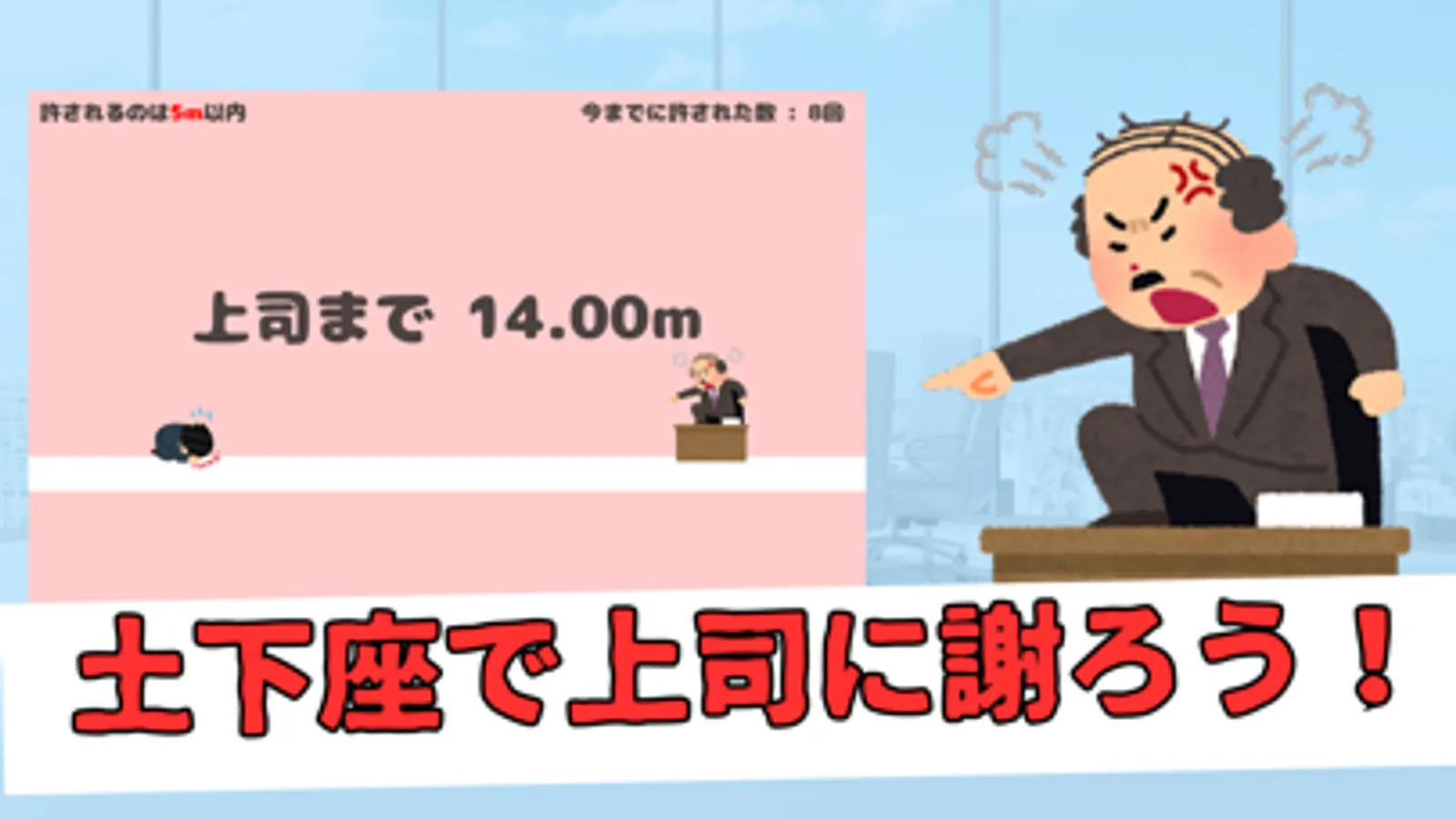 ・正しい距離で土下座をし、上司に許してもらえればスコアを獲得できます。