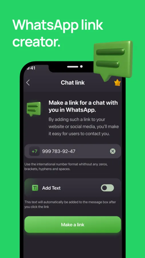 - Chat Link - creating a link through which the user can quickly go to WhatsApp chat;