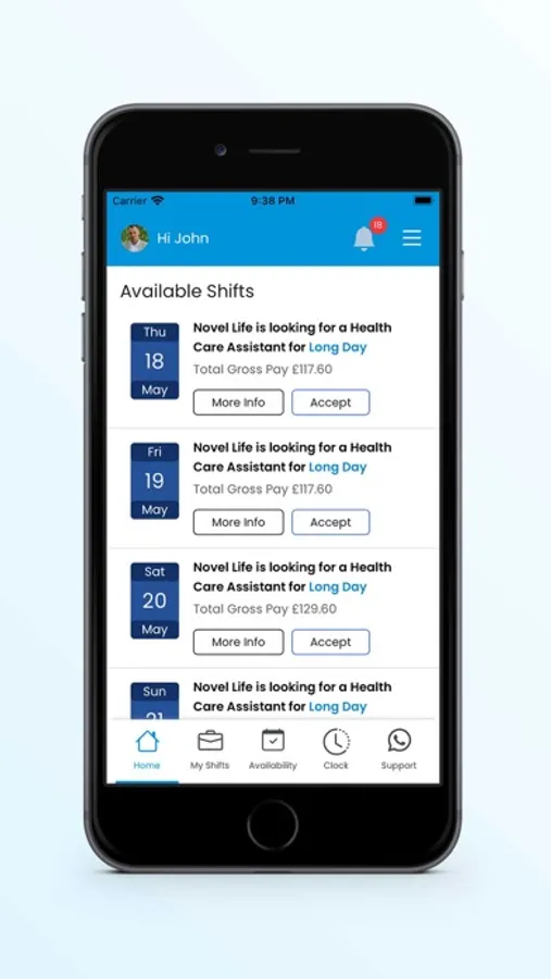 Our app helps nurses, carers and other medical staff to create an account, upload their certificates and maintain current fit to practice status. Care homes and hospitals can post shifts through the app for fast and easy notification to the allocated staff to view available vacancies and accept shifts. The app also helps the staff and employers to see their respective work history, payment history, timesheets etc.