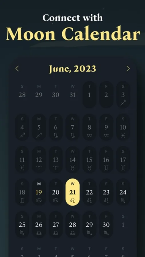 Explore a comprehensive Moon calendar, follow lunar cycles, and understand how they impact you. Allow Moon energy to gently navigate your journey, revealing your strengths and authentic essence.