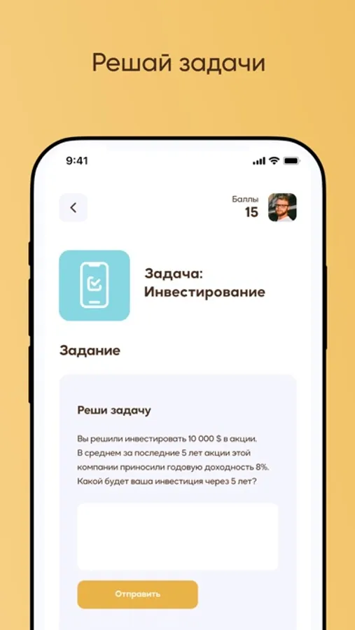 Пройди увлекательные тесты по финансовой грамотности, чтобы оценить свои знания и навыки. Испытай себя, решая финансовые задачи. Соревнуйся с друзьями и другими пользователями, чтобы выяснить, кто самый финансово грамотный. Зарабатывай баллы и делись ими с друзьями. Независимо от твоего уровня знаний, здесь ты найдешь задания, подходящие именно тебе.