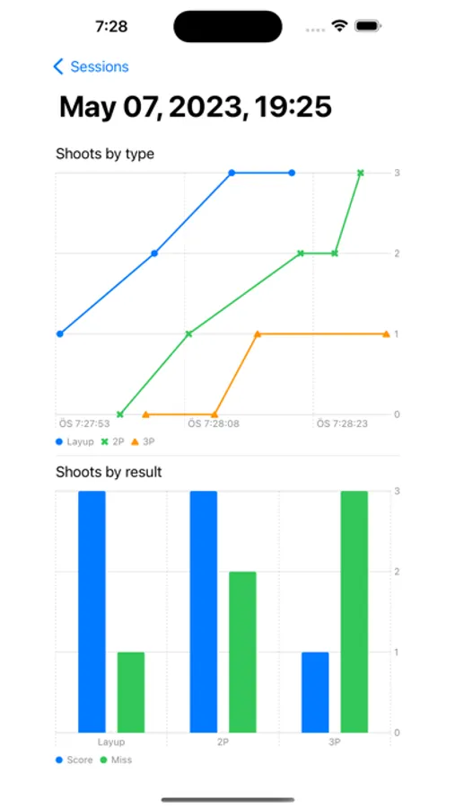 The iPhone app will show you the results with two graphs, one is based on your shoot types and the other one based on your shoot results.