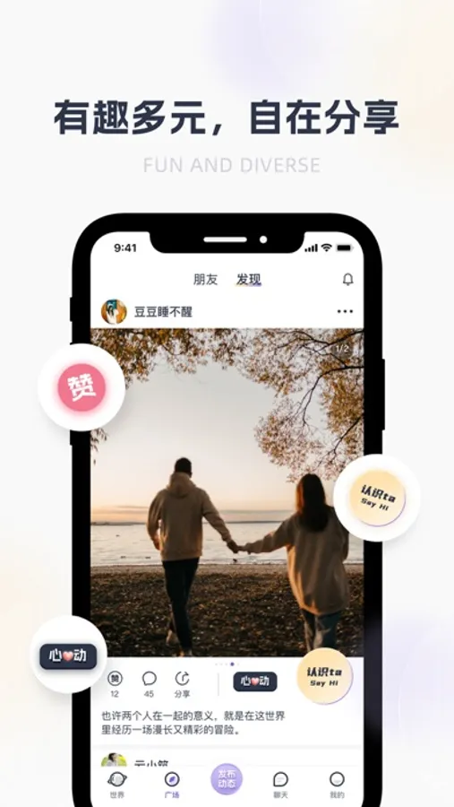 双向奔赴的心动、真诚主动的打招呼,随时结识更多兴趣相投的好友,即时互动陪伴