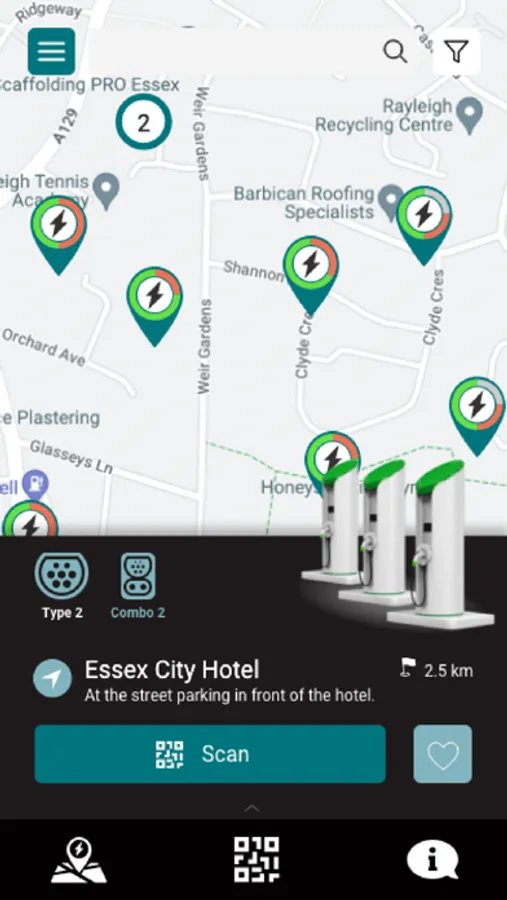 - Vérifiez, en un clin d'œil et instantanément, la disponibilité des points de charge sur la