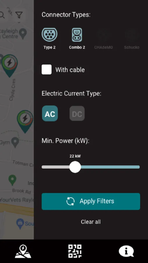- Recherchez et filtrez facilement vos bornes par localisation, vitesse et puissance de