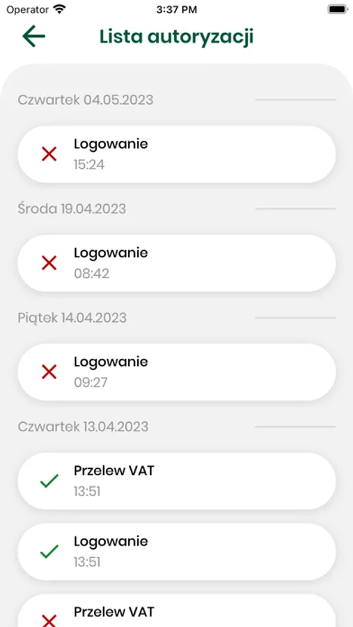- wyświetlanie szczegółów każdej autoryzowanej operacji (m.in. kwoty operacji, danych odbiorcy przelewu),