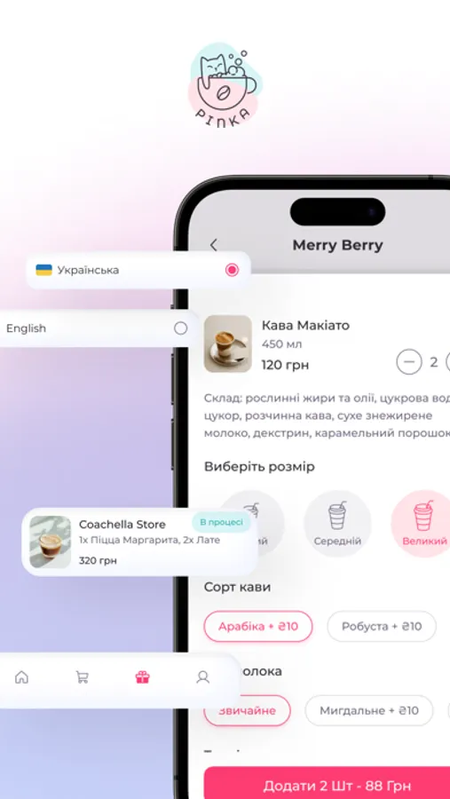 Pinka coffee is a universal mobile app for those who cannot live without coffee.