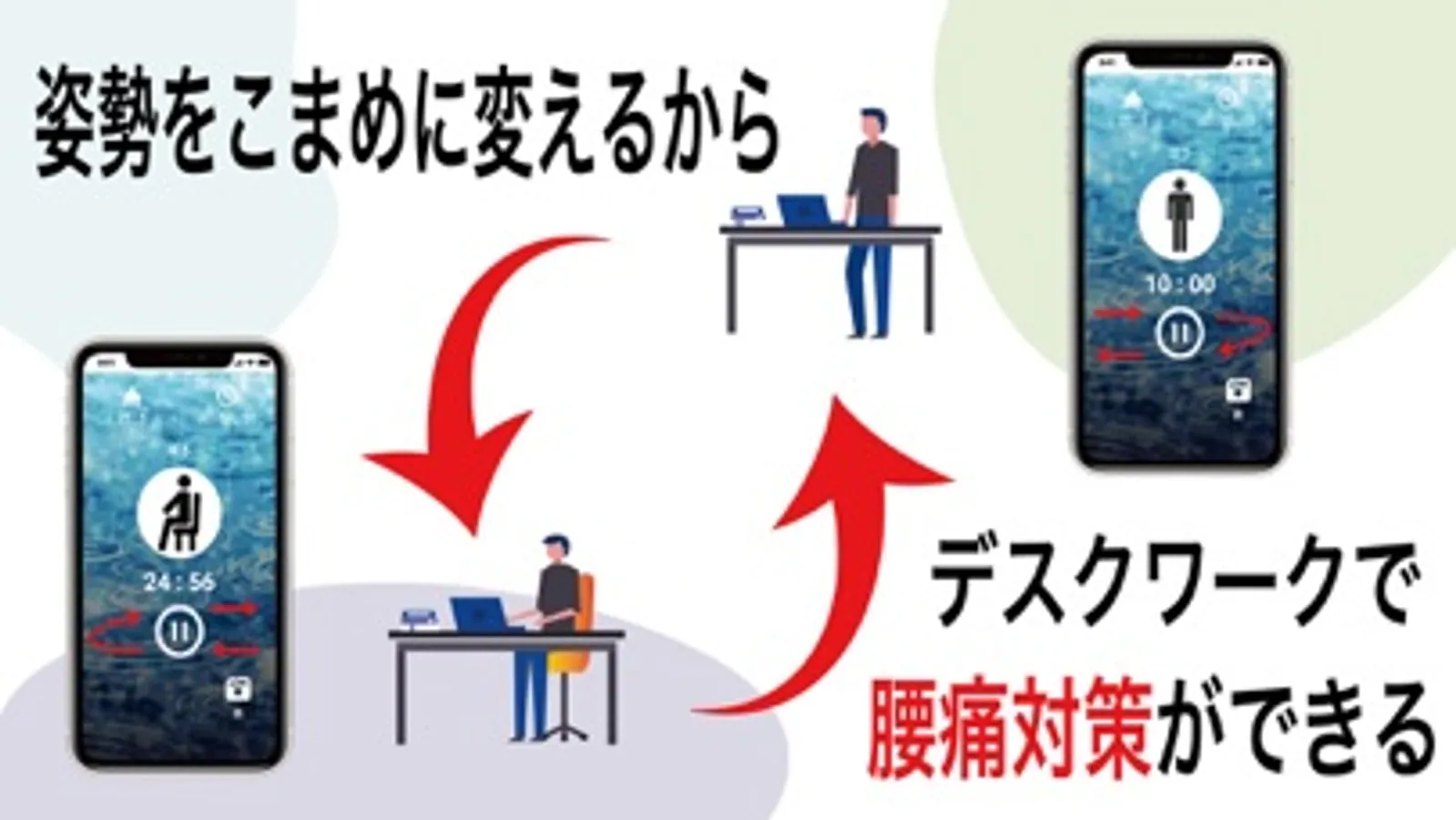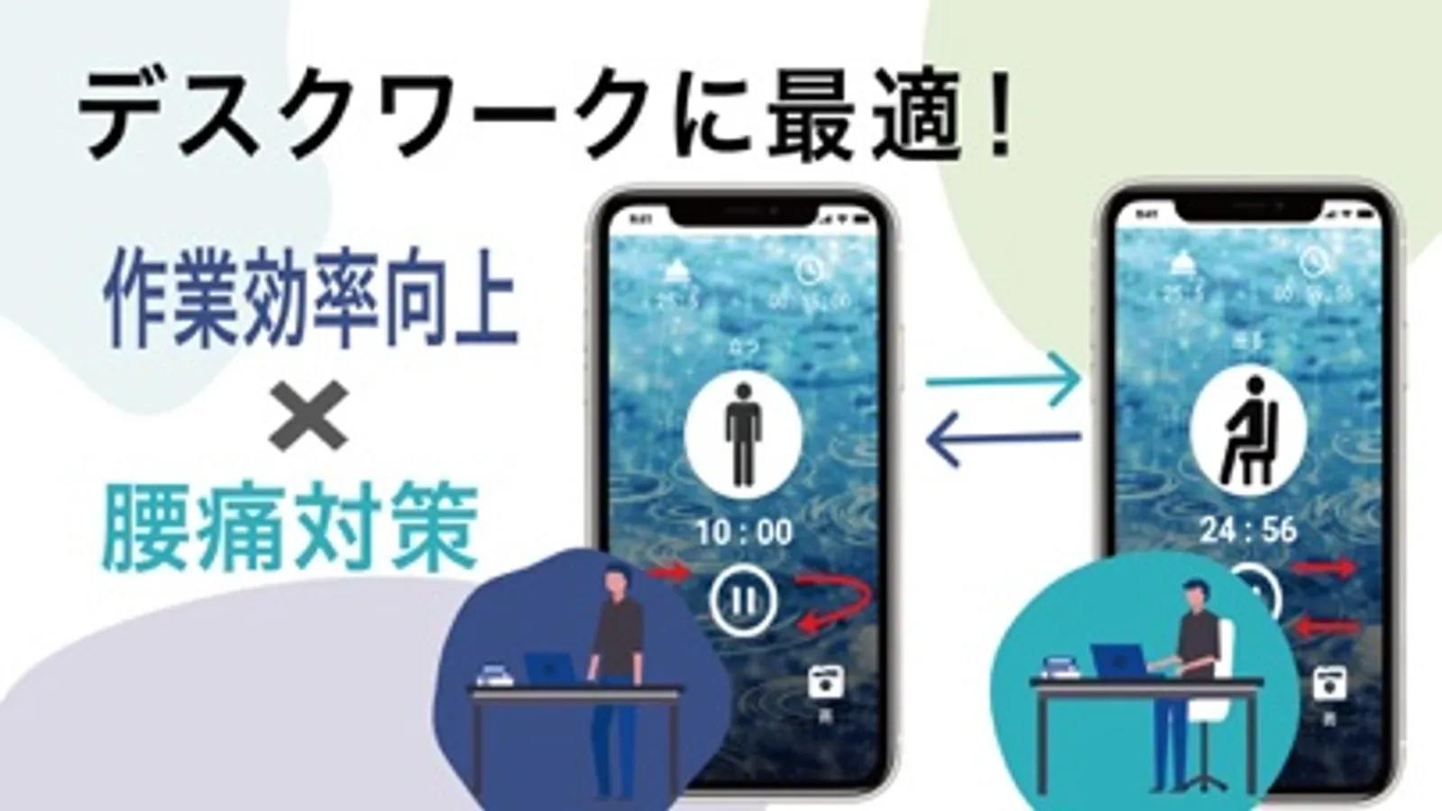 昇降デスクとポモドーロタイマーを融合させることで座り作業と立ち作業を交互におこなうことができる健康的な作業効率アプリが登場!