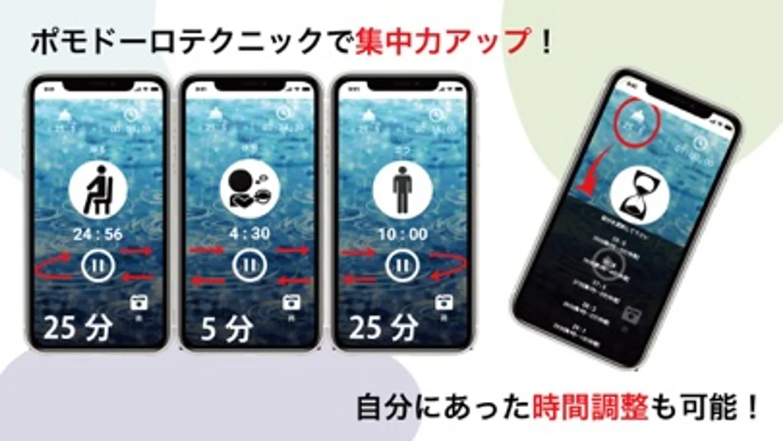・ポモドーロタイマーを採用しているため、こまめに休憩をはさむことで集中力を維持することができます