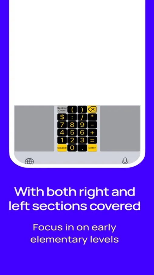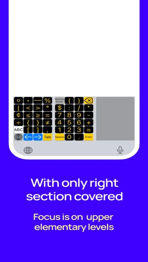Compatible with any website or app that allows screen changes. The keyboard is accessible with VoiceOver, Switch Access, and Eye Gaze. Early learners can benefit from removable section covers, keeping attention on relevant math symbols.