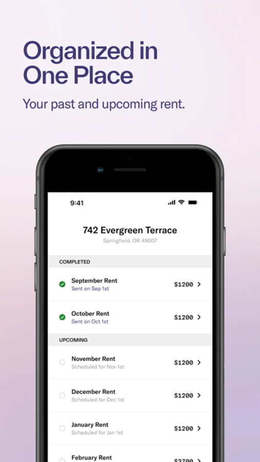• Faster than checks: Rent App transfers arrive in your landlord's bank account like a direct deposit in 1-2 days – no more snail mail to send or receive.