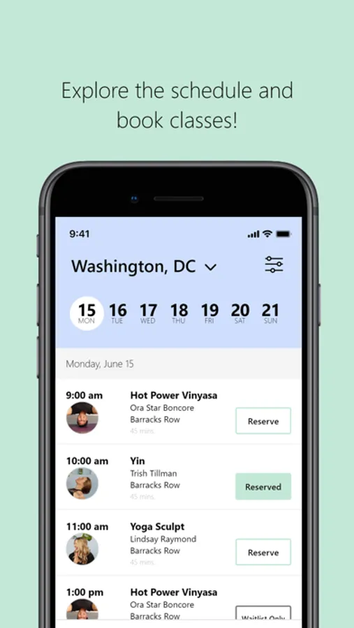 - Favorite class booked? Join the waitlist and get notified when a spot becomes available.