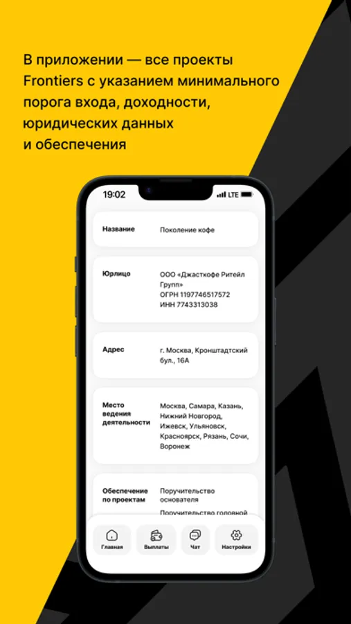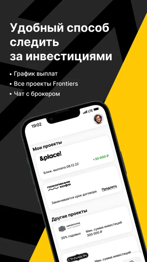 Следите за тем, как работают инвестиции с компанией Frontiers: смотрите график выплат, общайтесь с брокером в чате и выбирайте новые проекты. Полезная информация и поддержка инвестора — теперь в одном приложении.