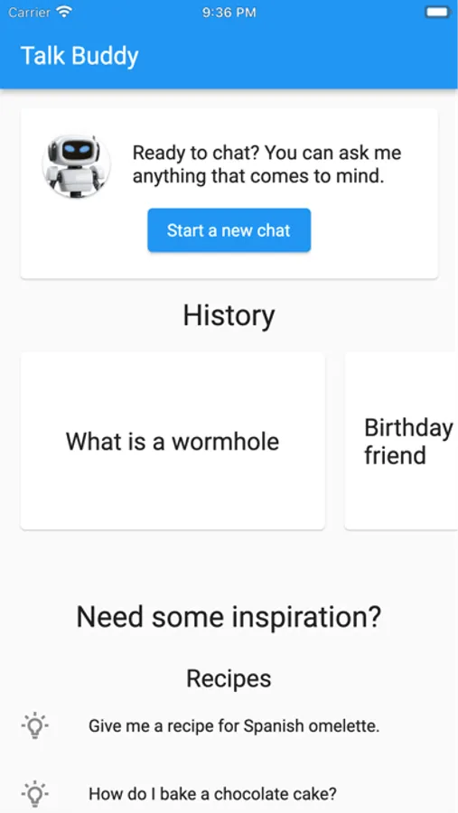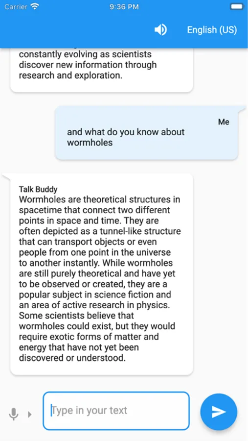 Talk Buddy allows you to interact with Artificial Intelligence with your voice, and you will hear the answer also with voice.