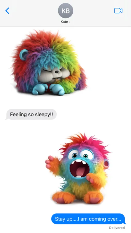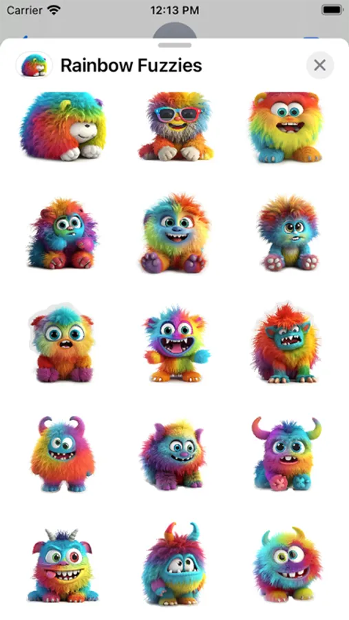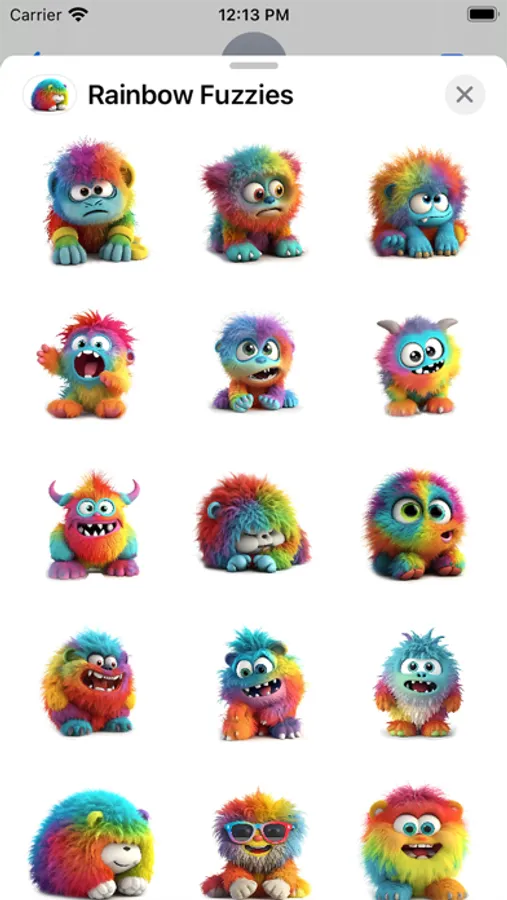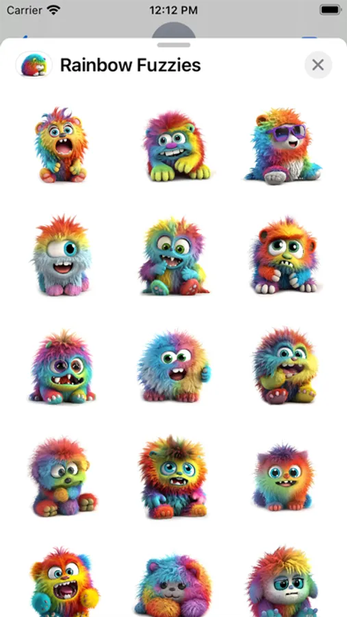 Get ready to add a burst of colour and cuteness to your iMessages with our new pack of RainbowFuzzies emoji stickers! These 3D fuzzy monsters with rainbow fur are the perfect way to express a range of emotions, from innocence and joy to quirkiness and fun. Perfect for anyone who loves cute and colourful things, our stickers are a must-have. So why wait? Download our Rainbow Fuzzy Monsters iMessage emoji stickers pack today and let the fun begin!