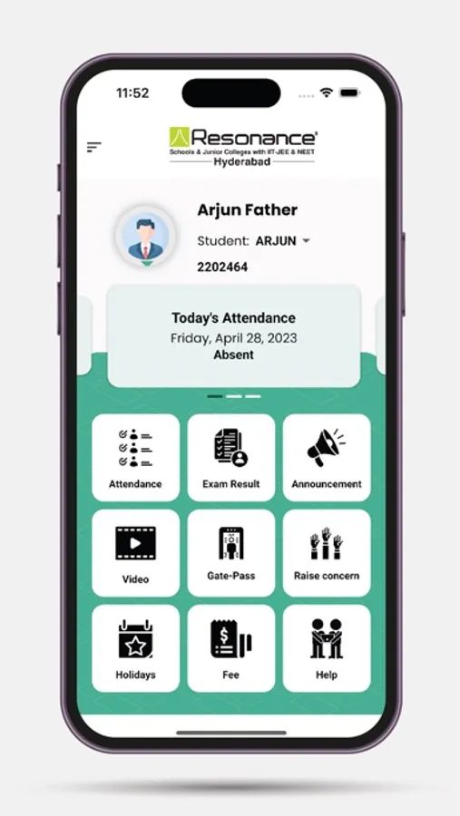 It is a high-end, immersive, robust, responsive, secure, user-friendly and a useful mobile application for all the parents who joined their children in Resonance Hyderabad Schools and Colleges to focus on their child’s academics. The App provide Exam results, Attendance of the student, Apply gate pass and Pay fee online and also to know the holiday calendar and any New announcements to the parents. Parent can raise any concern to the principal. Their is also help section if they have any problem they can contact Branch Admin Team.