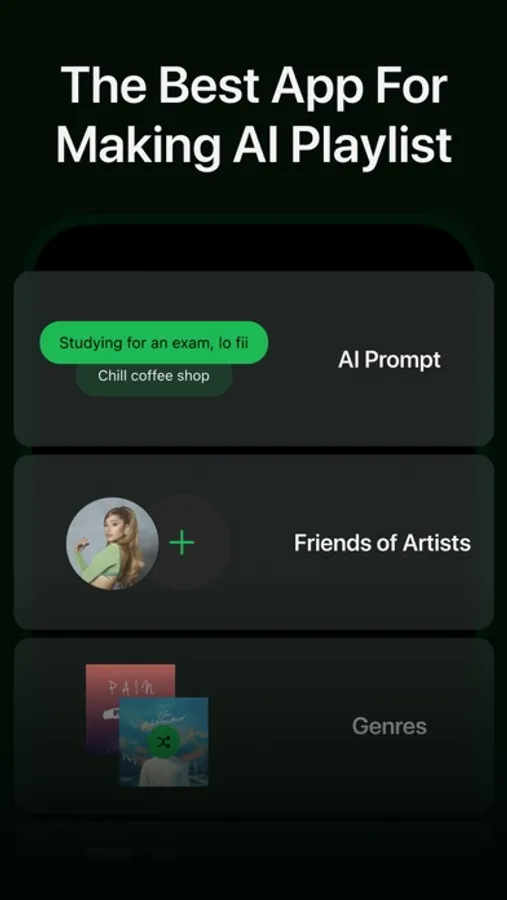 Discover new songs and playlists with Music AI Playlist Maker app. Unleash your musical identity and create the most popular Spotify playlists. Connect your Spotify account and create your AI playlist with few taps. Your newly created playlist will be added to your Spotify account instantly. Join thousands of people who create playlist with Music AI Playlist Maker app.