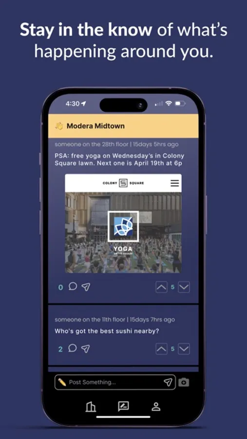 On Nextfloor, you can engage with your neighbors while maintaining your anonymity, making it easier to ask questions, seek help, or share recommendations. Nextfloor helps you unlock the full potential of your apartment community, whether you're new to the building or have lived there for years.