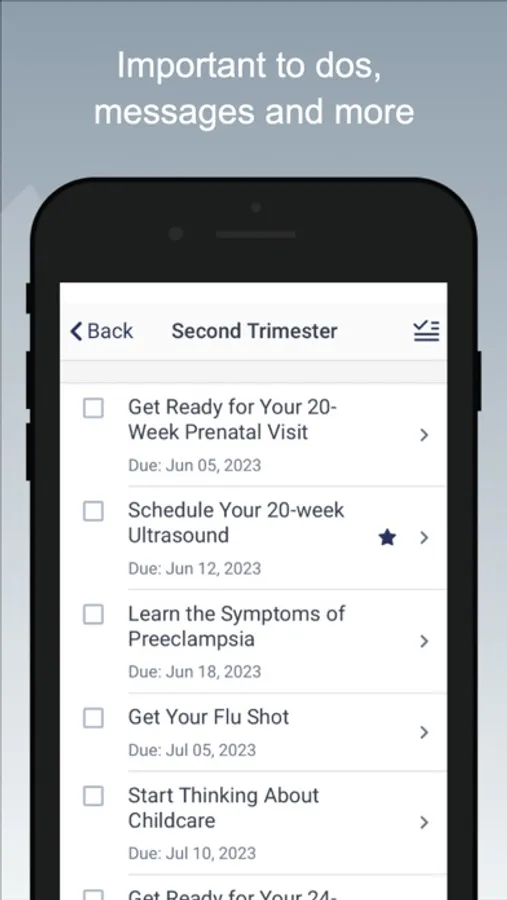 ● Get reminders and timely health to dos to stay on track with your pregnancy.