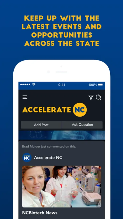 If you’re ready to be a part of a powerful movement in the world of life sciences, download the Accelerate NC app today!