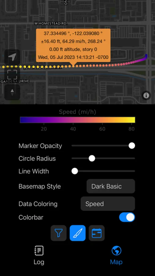 · Log and view location, altitude, speed, time, course, location accuracy, and more.