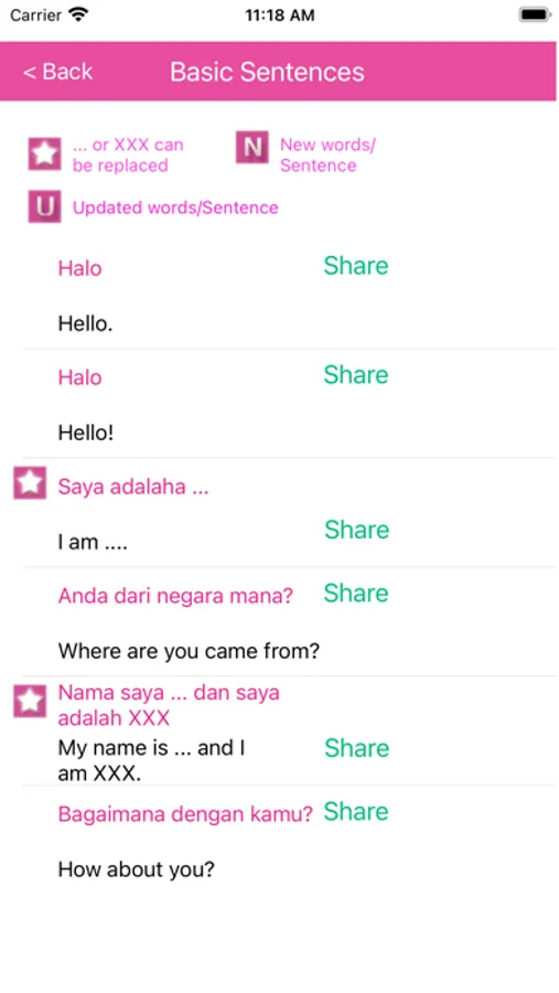 1) Some Indonesian basic words / sentences eg hello ...... can be shared via instant messenger.