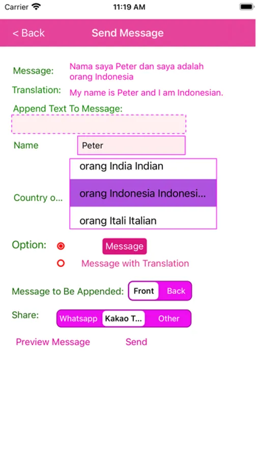 IndonesianSharingApps has provided a feature for user so that user who does not know Indonesian can also send messages in Indonesian share via instant messenger to your friend.